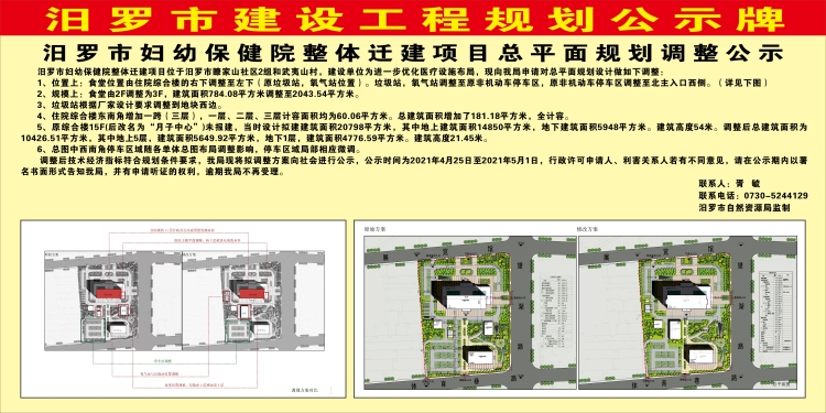 汨罗市妇幼保健院整体迁建项目总平面规划调整公示