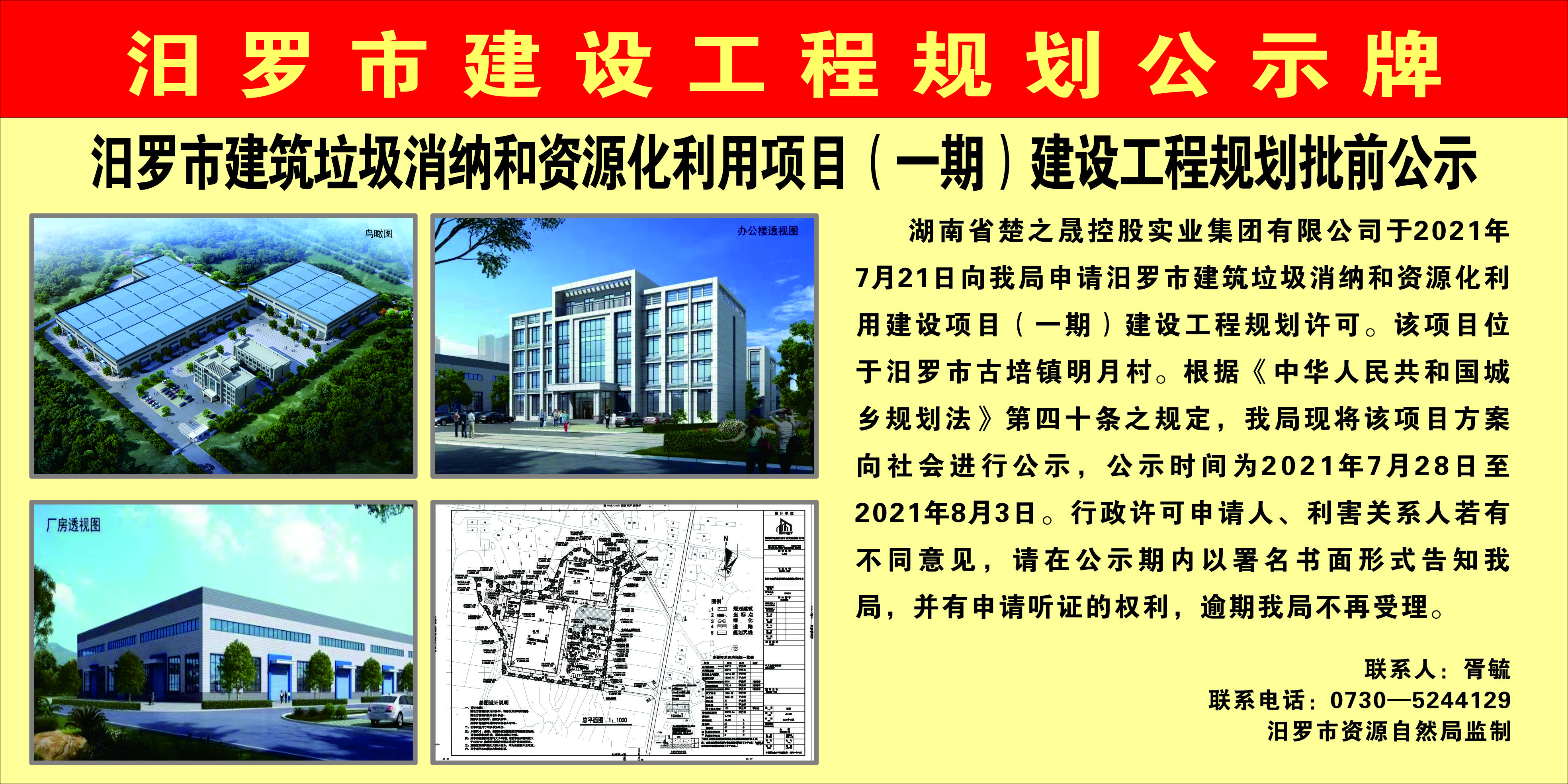 汨罗市建筑垃圾消纳和资源化利用项目(一期)建设工程规划批前公示