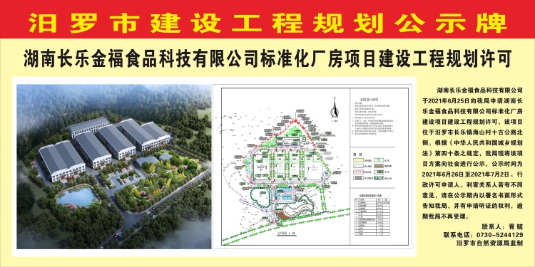 湖南长乐金福食品科技有限公司标准化厂房项目建设工程规划许可