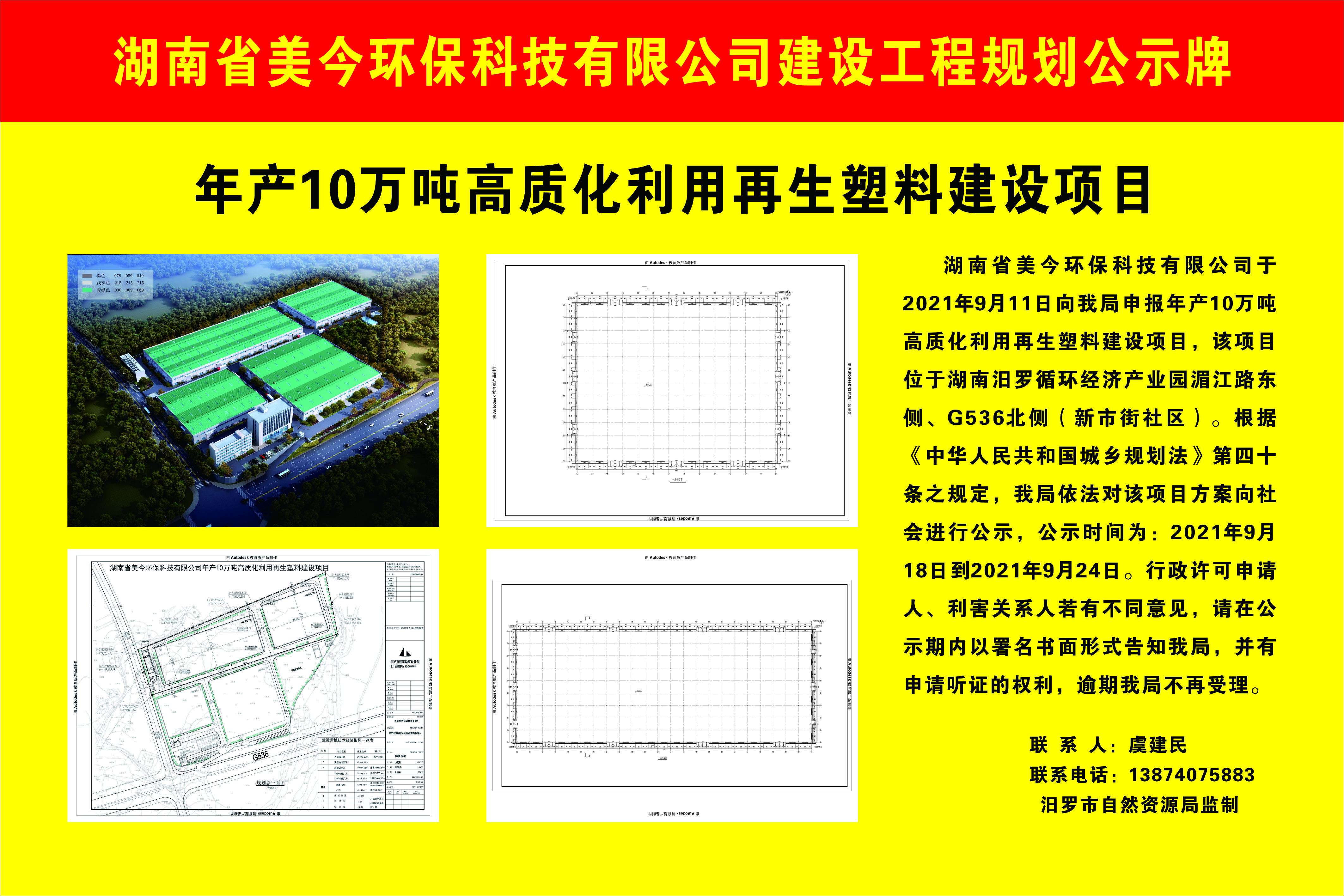 年产10万吨高质化利用再生塑料建设项目工程规划公示