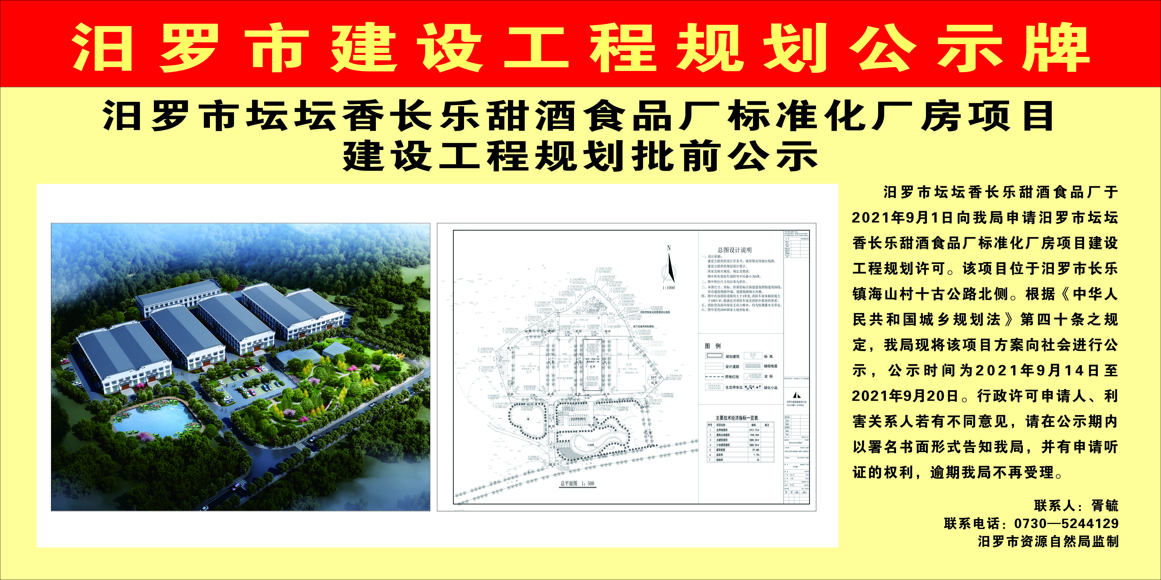汨罗市坛坛香长乐甜酒食品厂标准化厂房项目建设工程规划批前公示