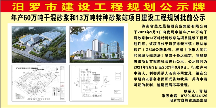 年产60万吨干混砂浆和13万吨特种砂浆站项目建设工程规划批前公示