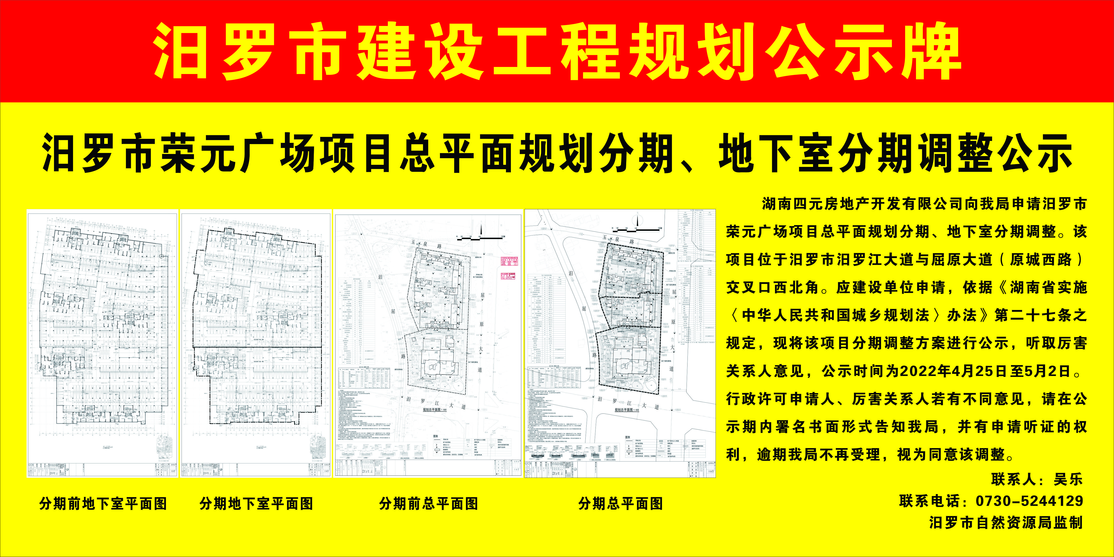 汨罗市荣元广场项目总平面规划分期、地下室分期调整公示