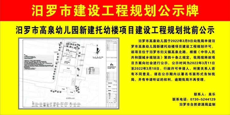 汨罗市高泉幼儿园新建托幼楼项目建设工程规划批前公示