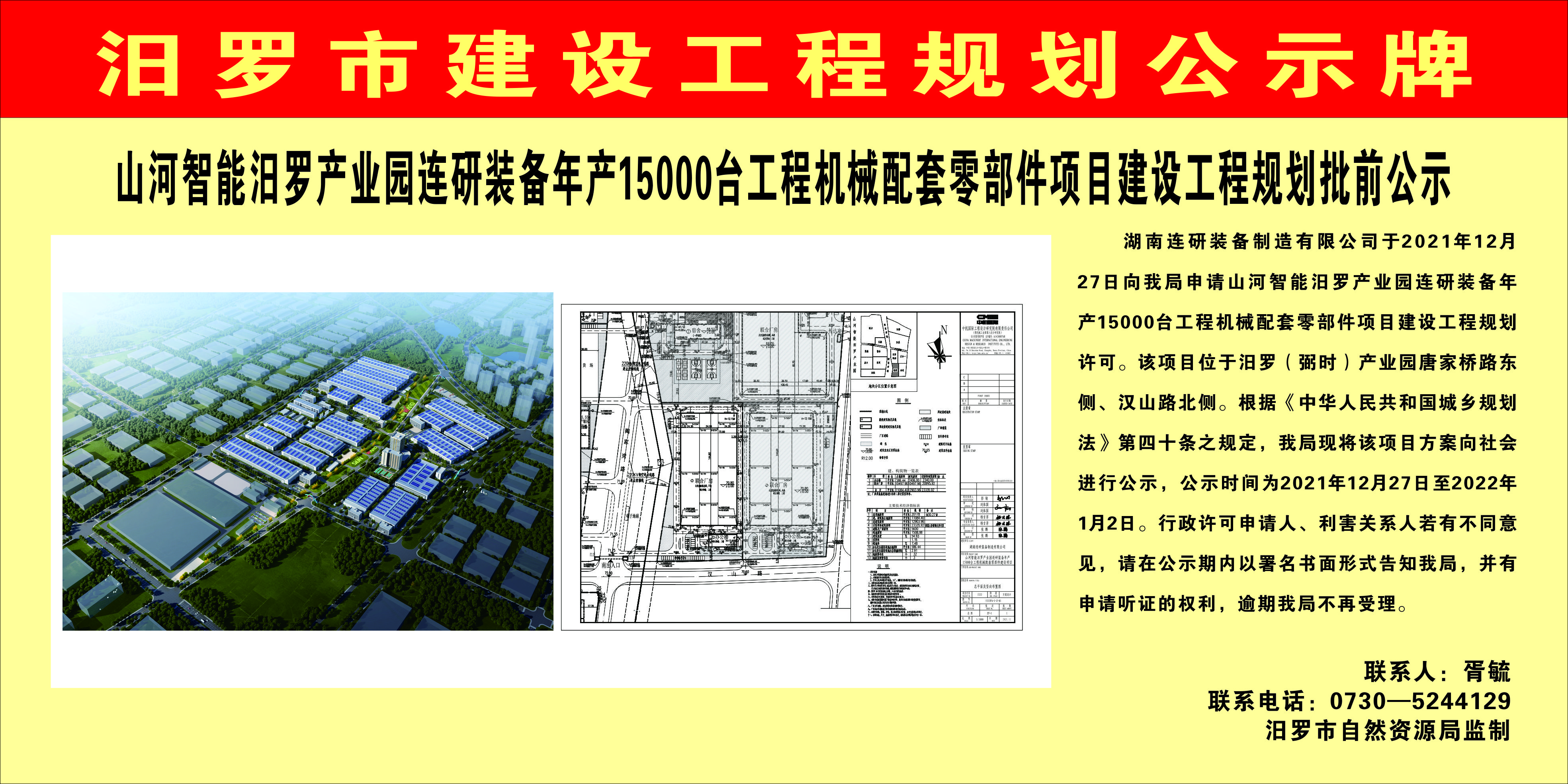 山河智能汨罗产业园连研装备年产15000台工程机械配套零部件项目建设工程规划批前公示
