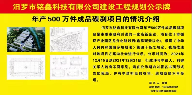 汨罗市铭鑫科技有限公司建设工程规划公示