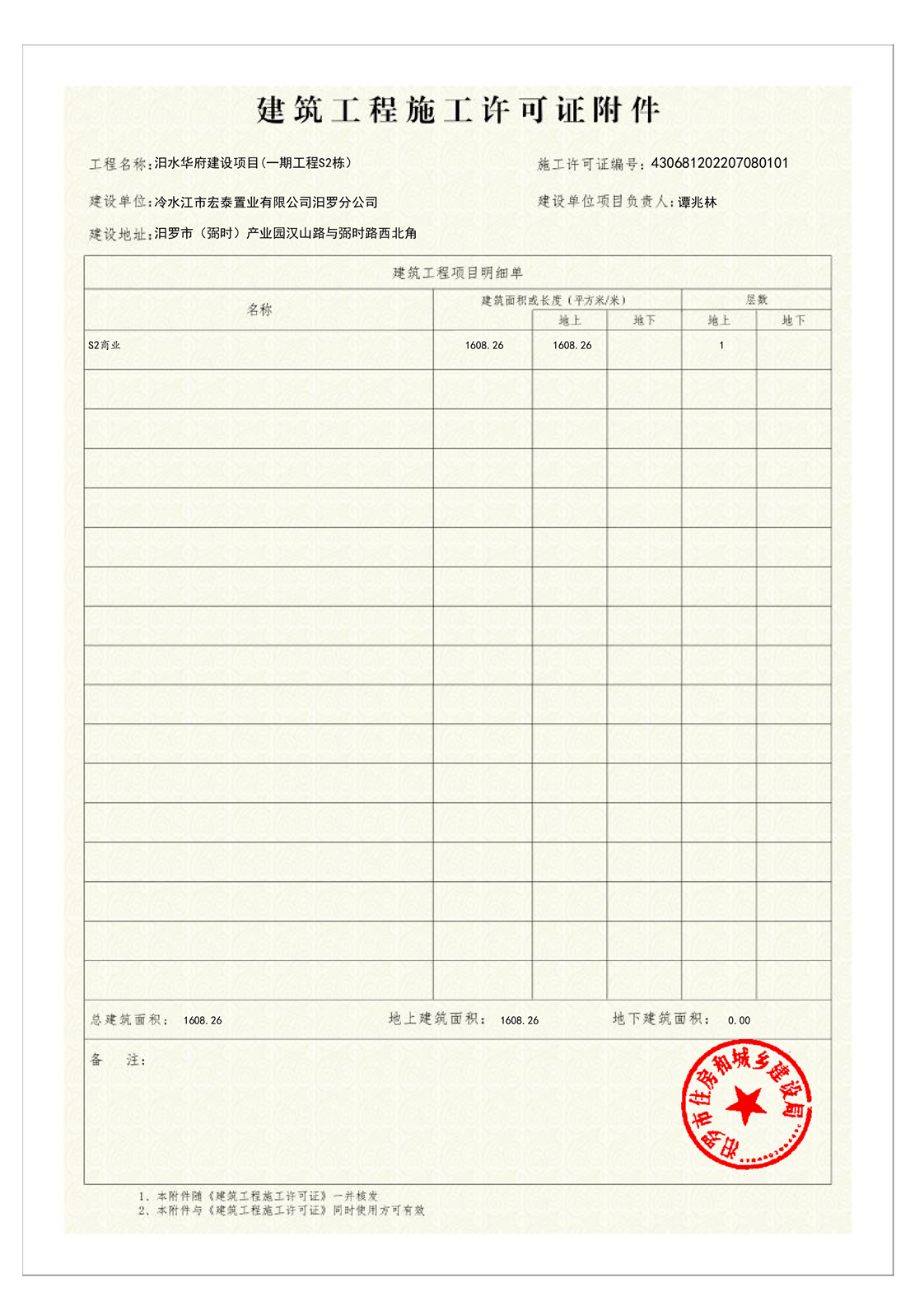 汨水华府建设项目(一期工程S2栋)施工许可证