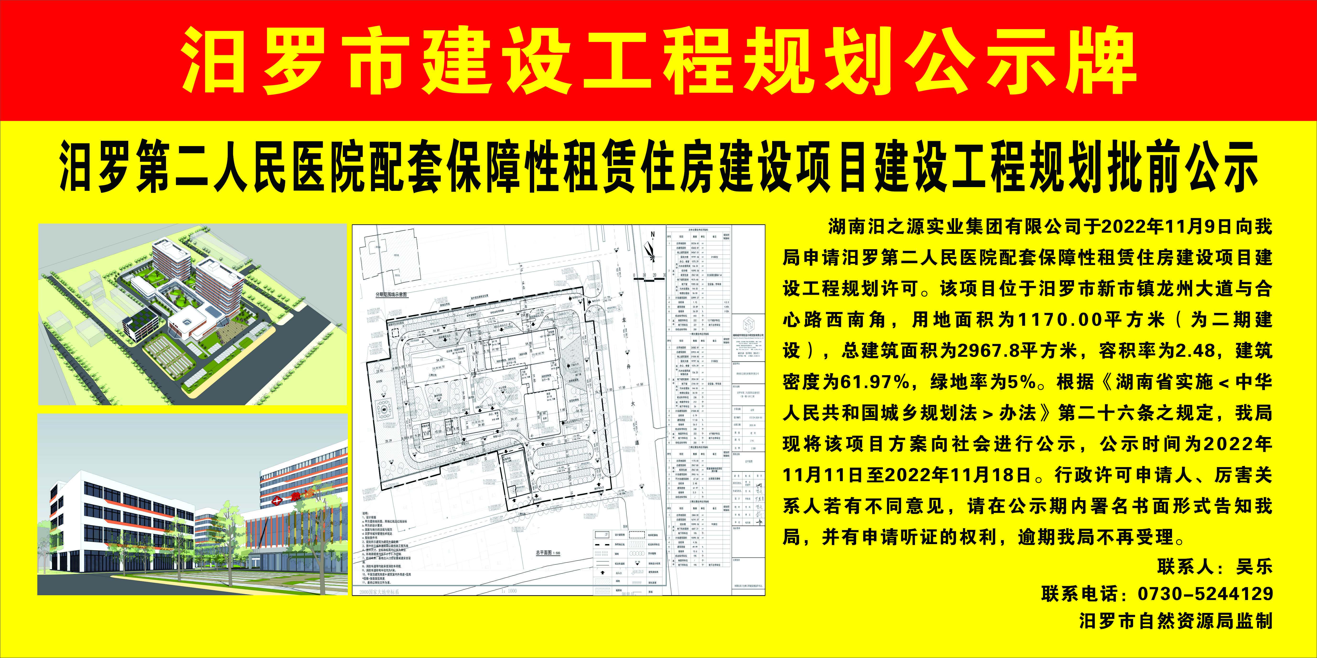 汨罗市第二人民医院配套保障性租赁住房建设项目工程规划批前公示