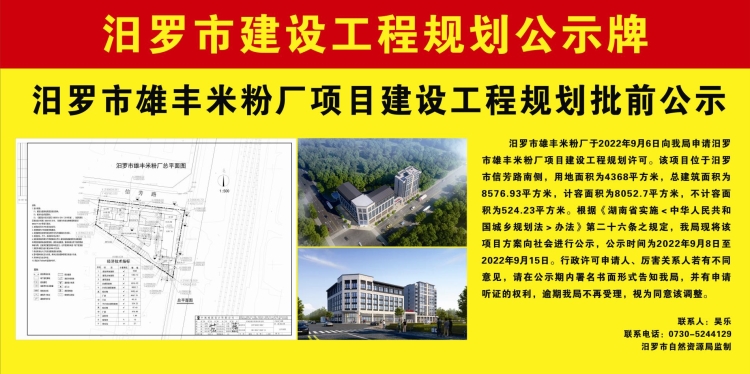 汨罗市雄丰米粉厂项目建设工程规划批前公示