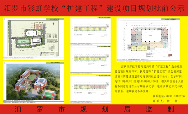 汨罗市彩虹学校“扩建工程”建设项目规划批前公示
