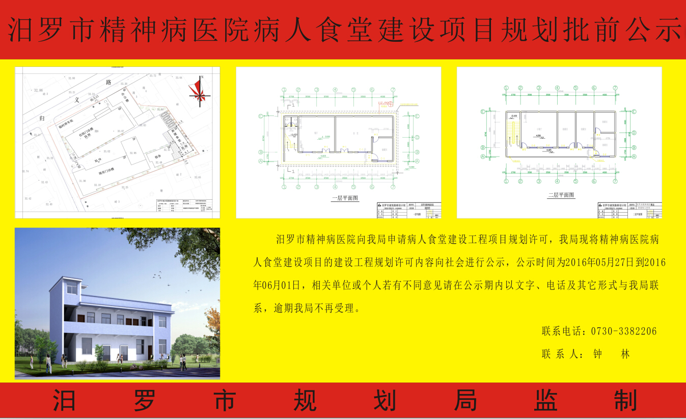 汨罗市精神病医院病人食堂建设项目规划批前公示