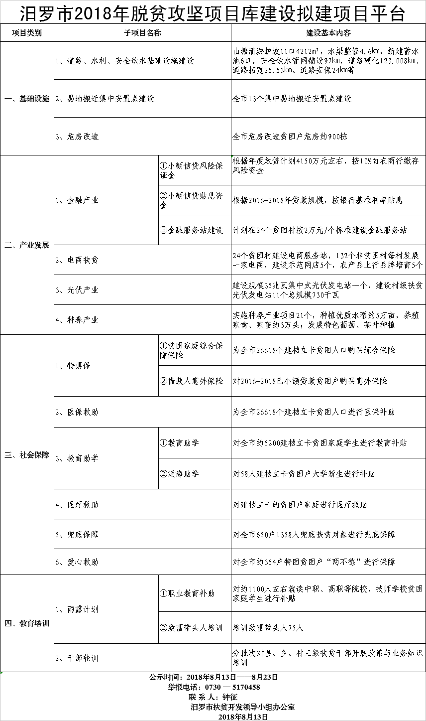 汨罗市2018年脱贫攻坚项目库建设拟建项目平台