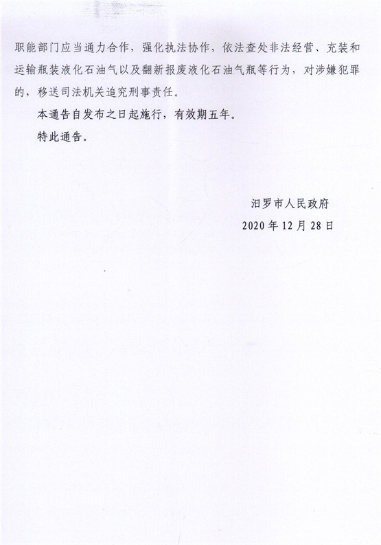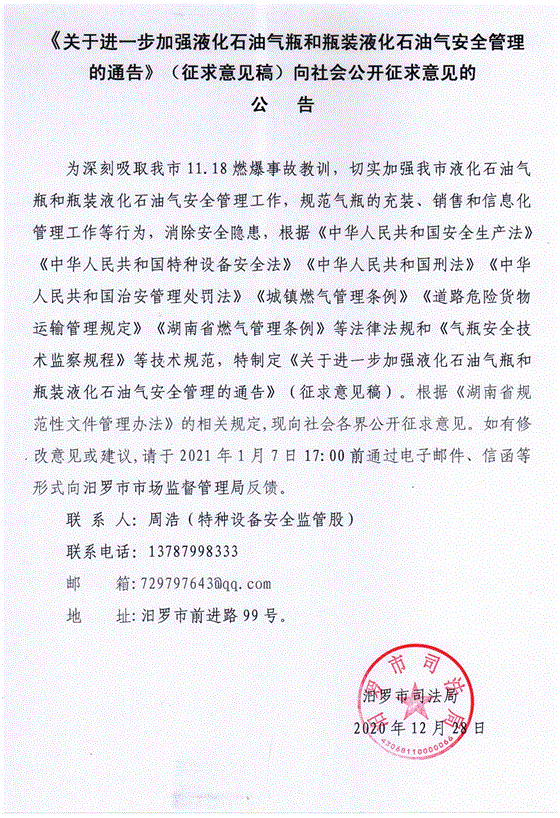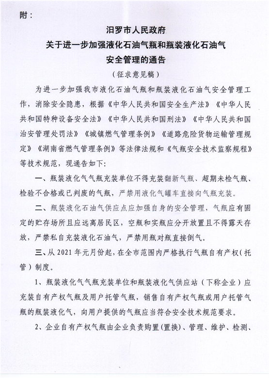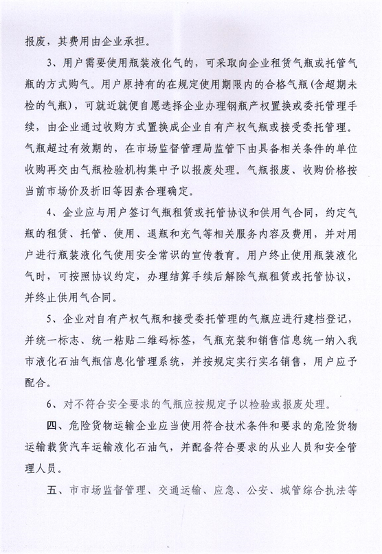 《关于进一步加强液化石油气瓶和瓶装液化石油气安全管理的通告》