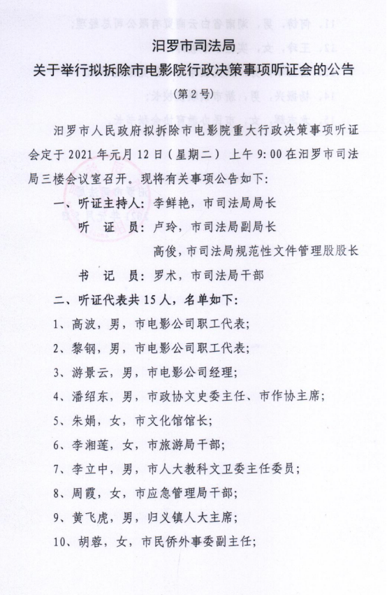 关于举行拟拆除市电影院行政决策事项听证会的公告(第2号)