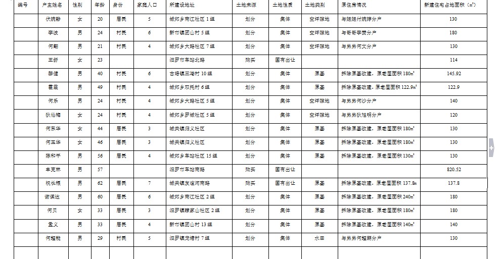 2014年元月份城市规划区私人建房拟批名单公示