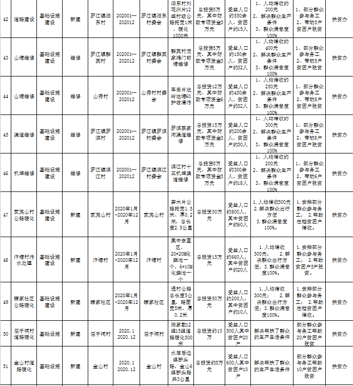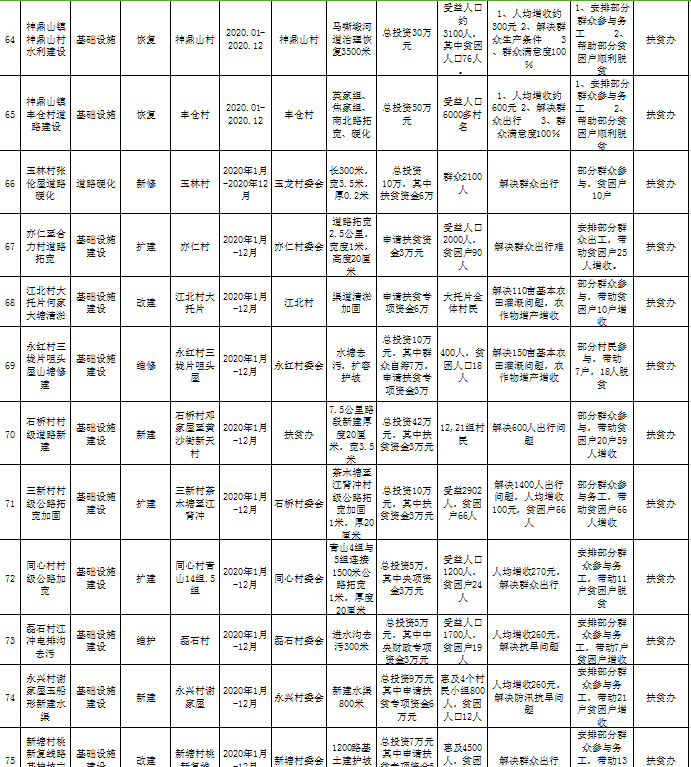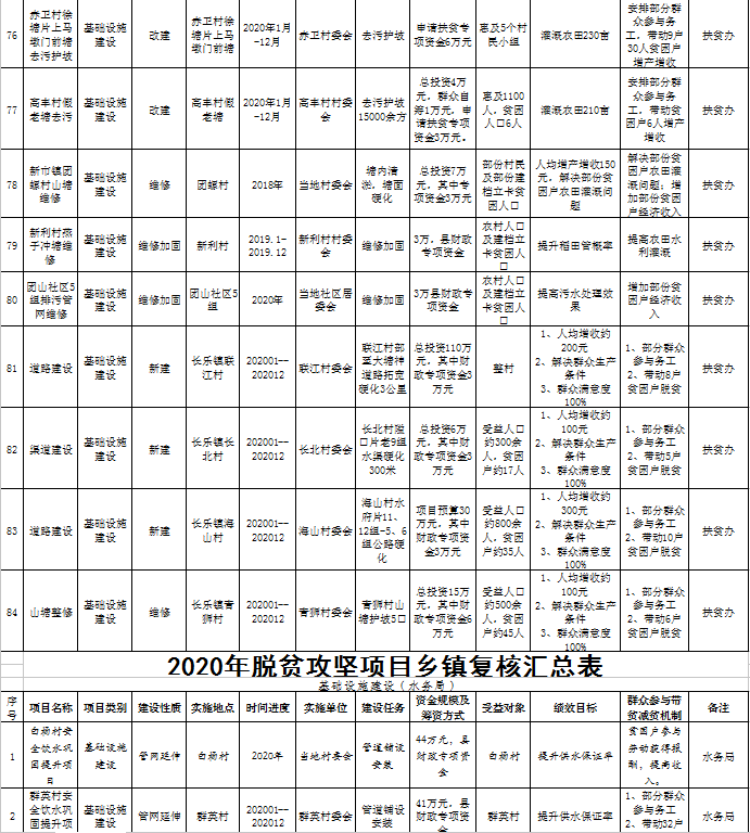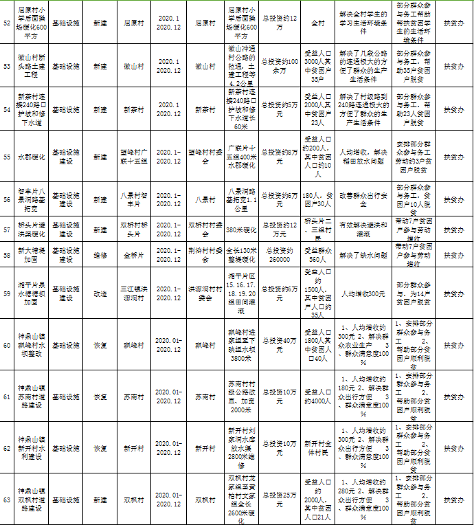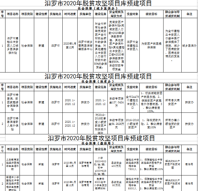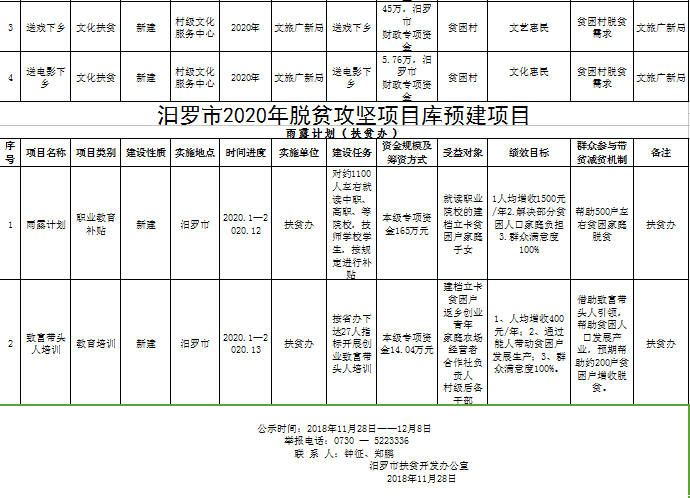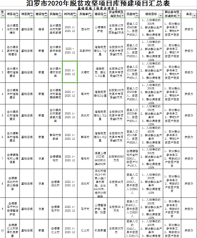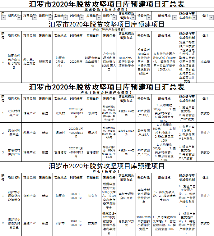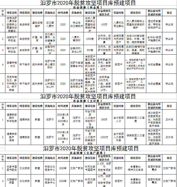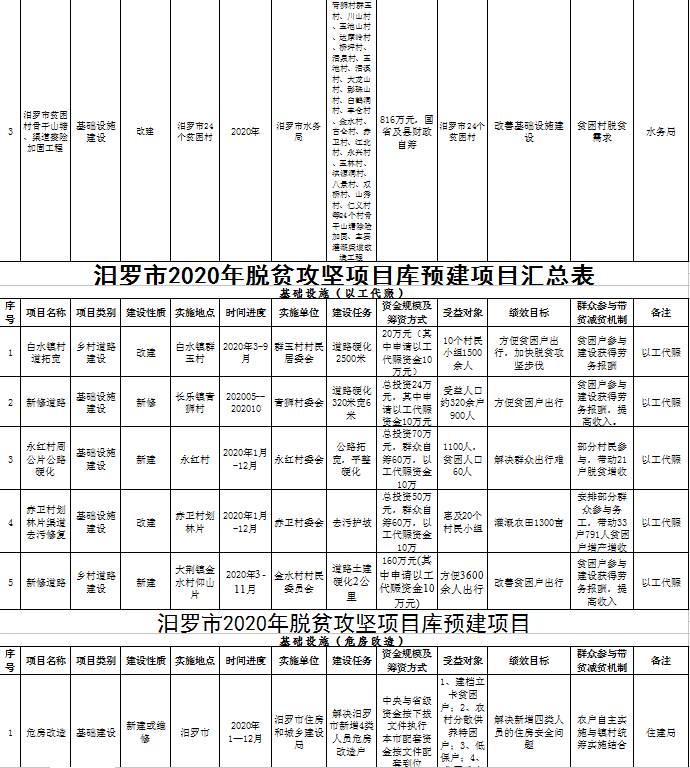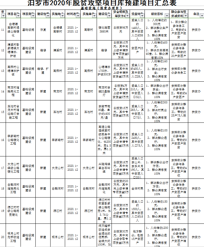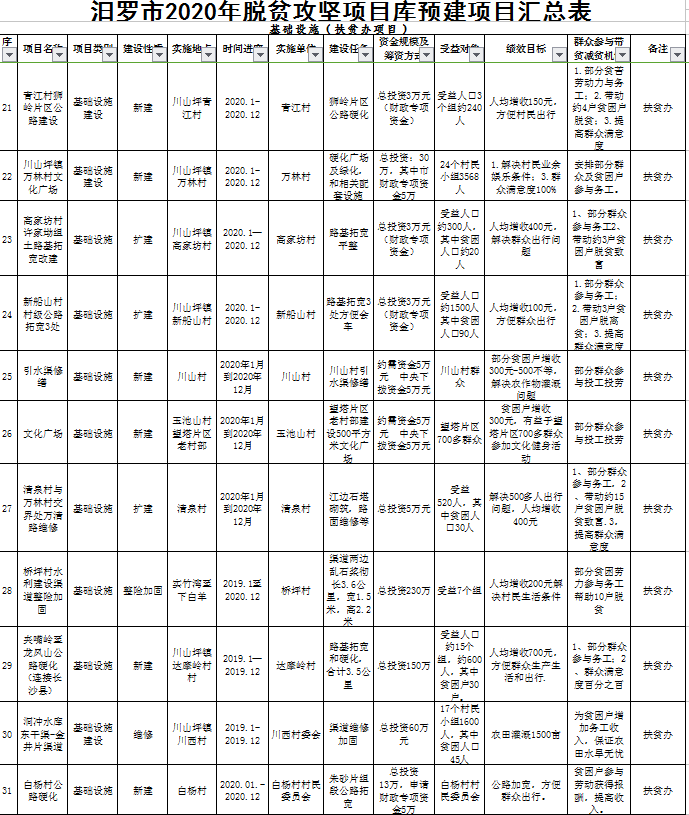 汨罗市2020年脱贫攻坚项目库预建项目汇总表