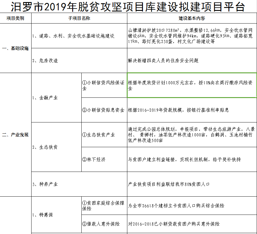 汨罗市2019年脱贫攻坚项目库建设拟建项目平台