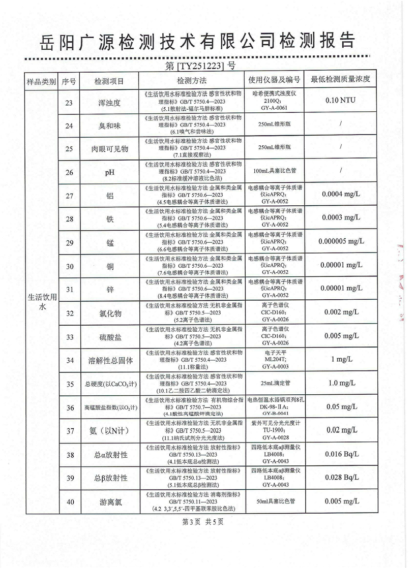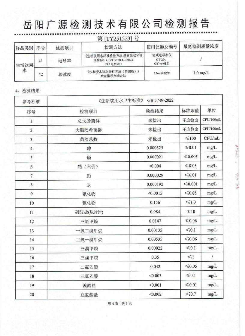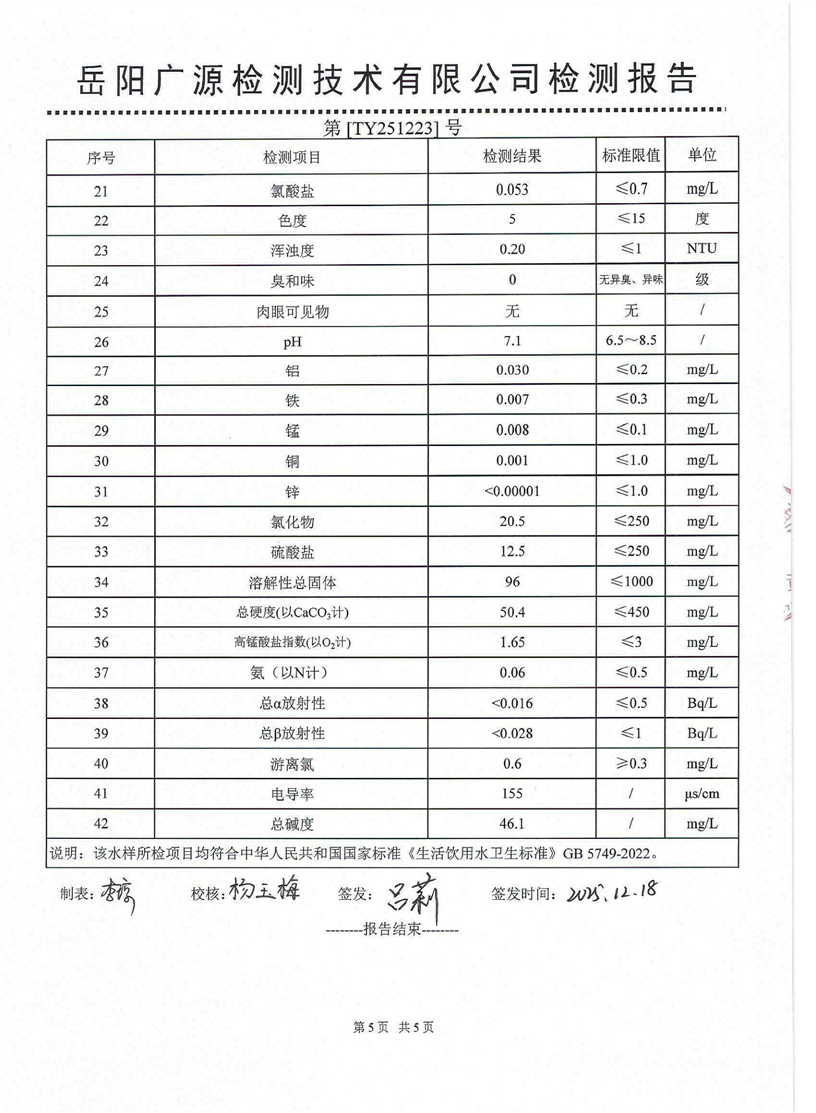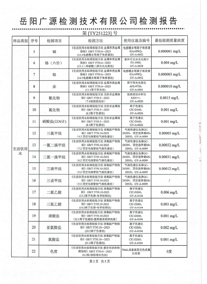 2026年1月份汨罗市自来水有限公司出厂水水质检月报表