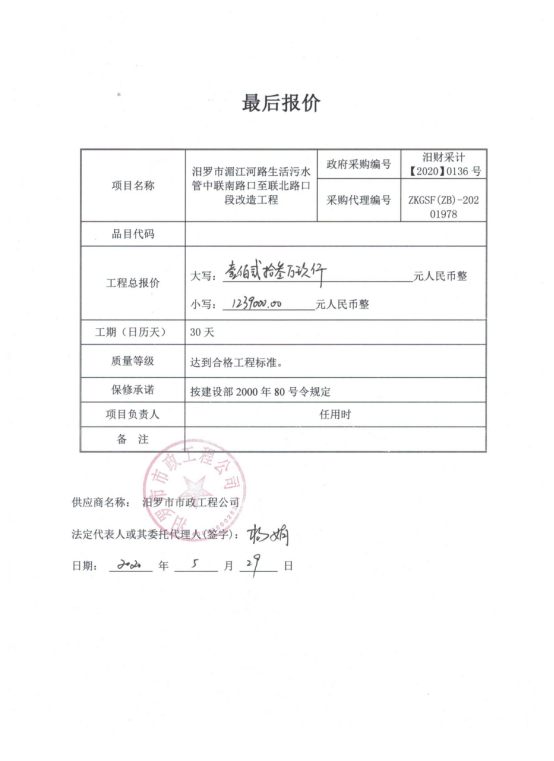 汨罗市行政审批服务局的 汨罗市政务服务中心整体搬迁工程-消防工程竞争性谈判采购项目于2020年6月 3日结束,现将成交结果公告如下: