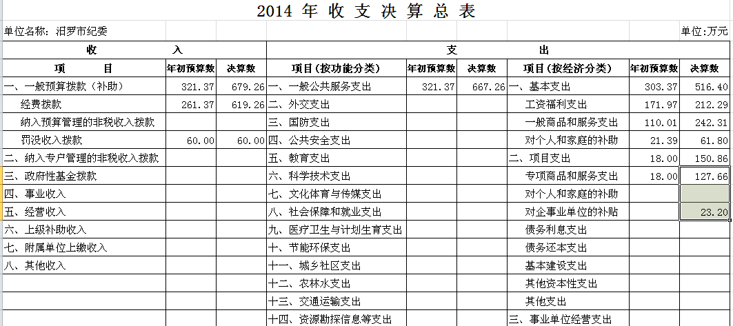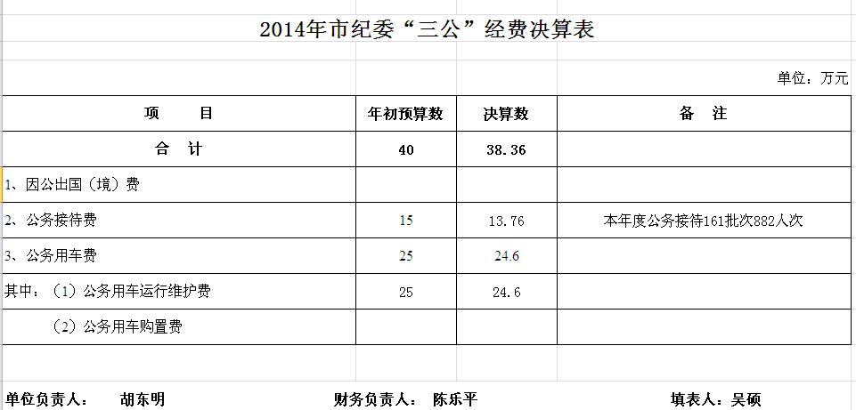 2014年汨罗市纪委部门单位决算和“三公”经费决算公开表