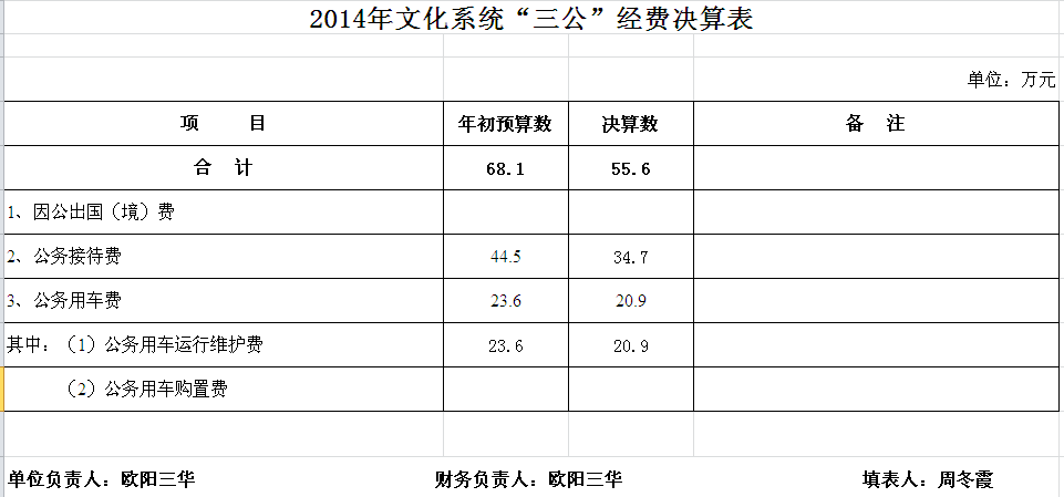 2014年汨罗市文化系统部门单位决算和“三公”经费决算公开表