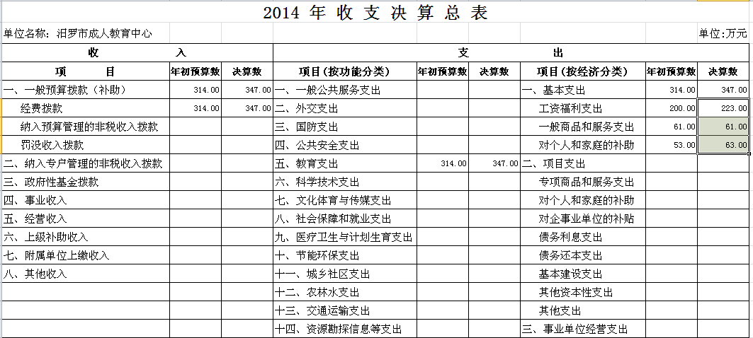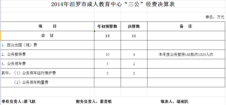 2014年汨罗市职业中专部门单位决算和“三公”经费决算公开表