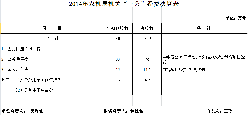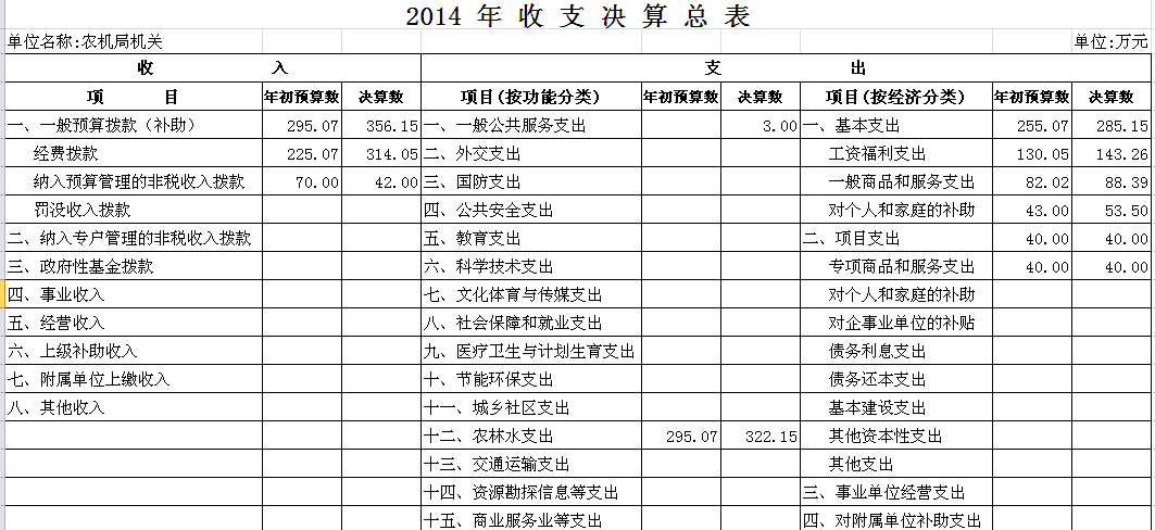 2014年农机局机关收支决算总表及“三公”经费决算表