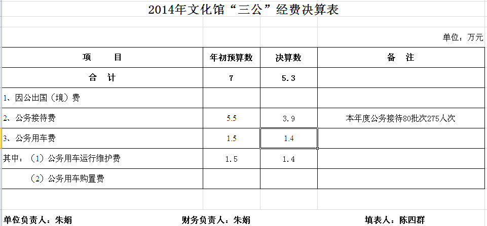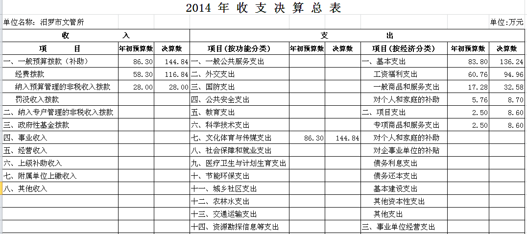 2014年汨罗市文管所部门单位决算和“三公”经费决算公开表