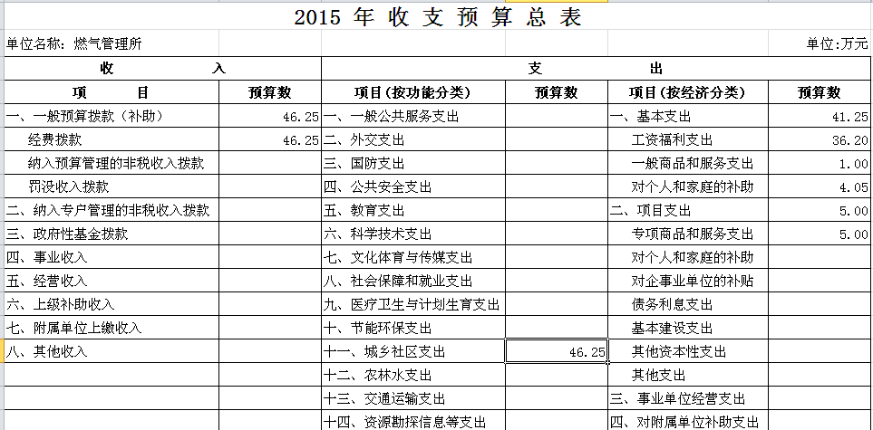 2015年燃气管理所收支预算总表及“三公”经费预算表