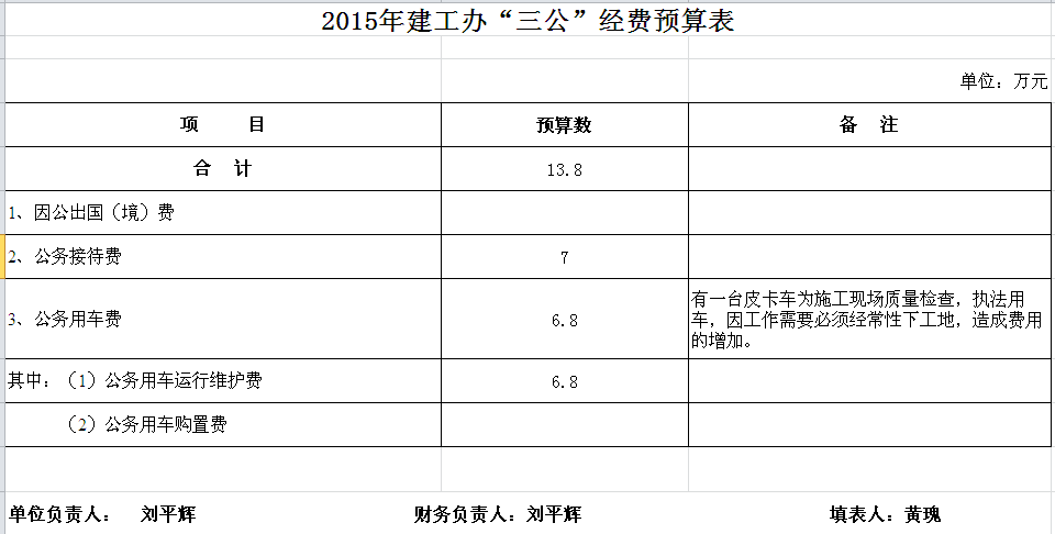 2015年建筑工程管理办公室收支预算总表及“三公”经费预算表