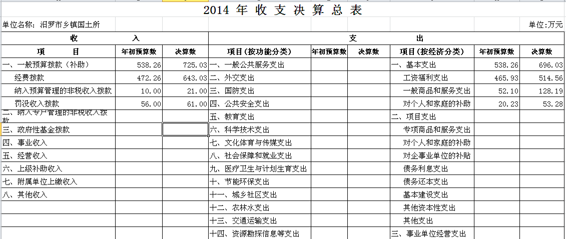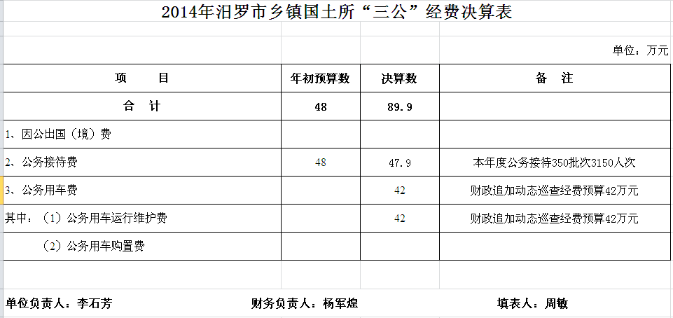 2014年乡镇国土所收支决算总表及“三公”经费决算表