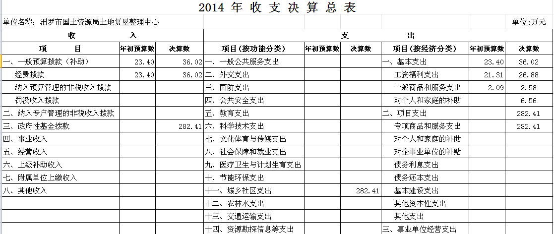 2014年国土资源局土地复垦整理中心收支决算总表及“三公”经费决算表