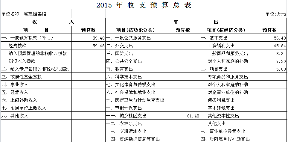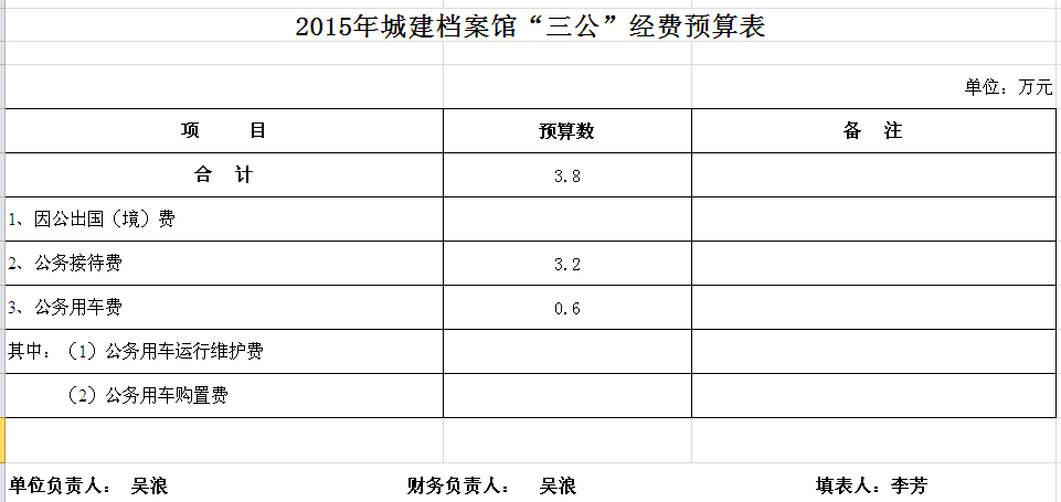 2015年城建档案馆收支预算总表及“三公”经费预算表
