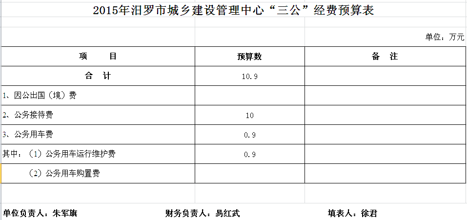2015年城乡建设管理中心收支预算总表及“三公”经费预算表