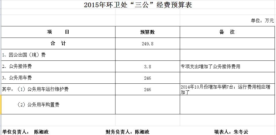 2015年环卫处收支预算总表及“三公”经费预算表