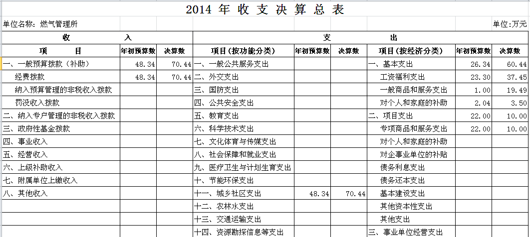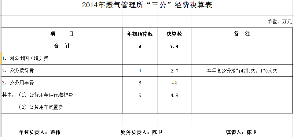 2014年汨罗市燃气管理所决算和“三公”经费决算公开表