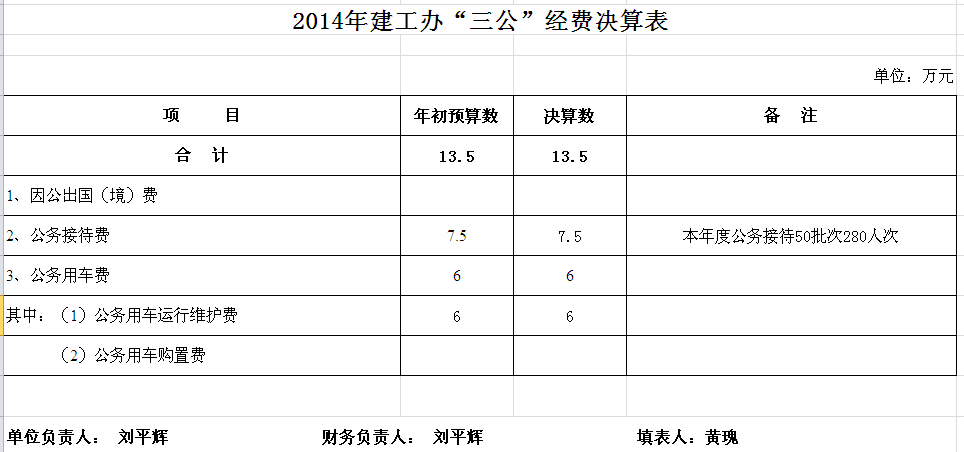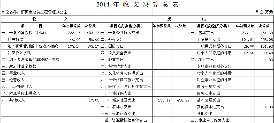 2014年汨罗市建筑工程管理办公室决算和“三公”经费决算公开表