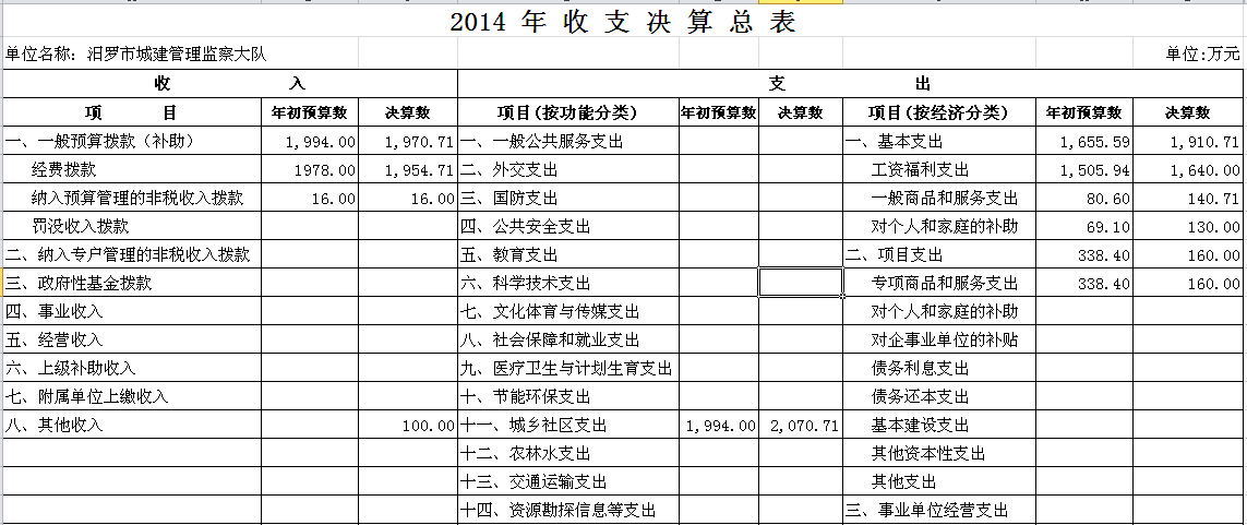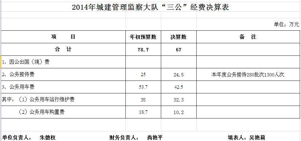 2014年汨罗市城建管理监察大队决算和“三公”经费决算公开表
