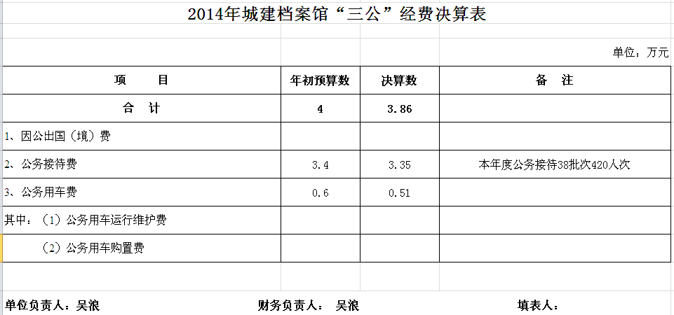 2014年汨罗市城建档案馆决算和“三公”经费决算公开表