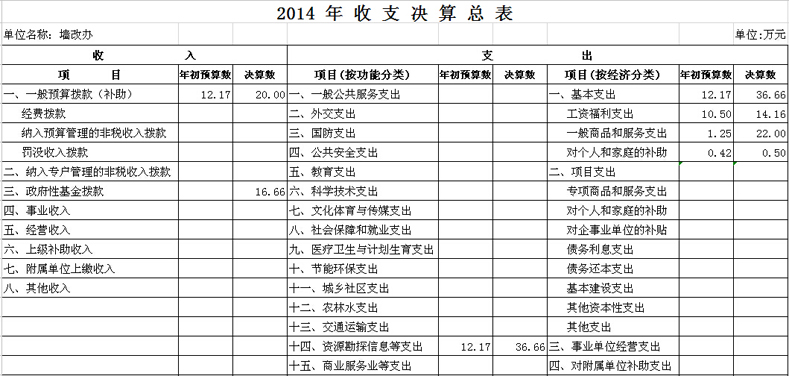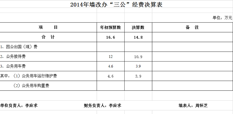 市墙改办部门决算和“三公”经费决算公开表