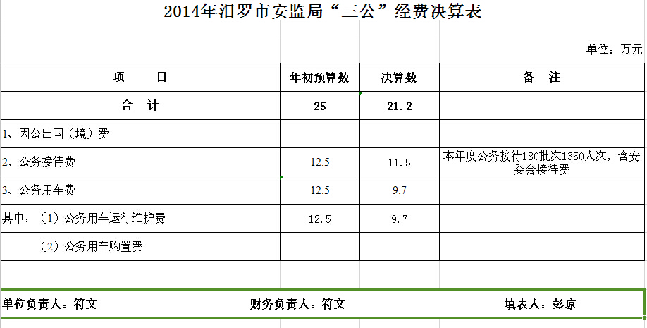 安监局部门决算和“三公”经费决算公开表