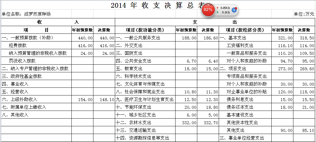2014年汨罗市原种场部门单位决算和“三公”经费决算公开表