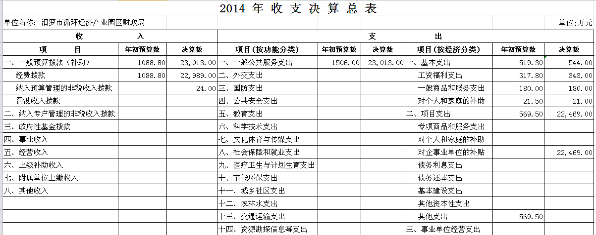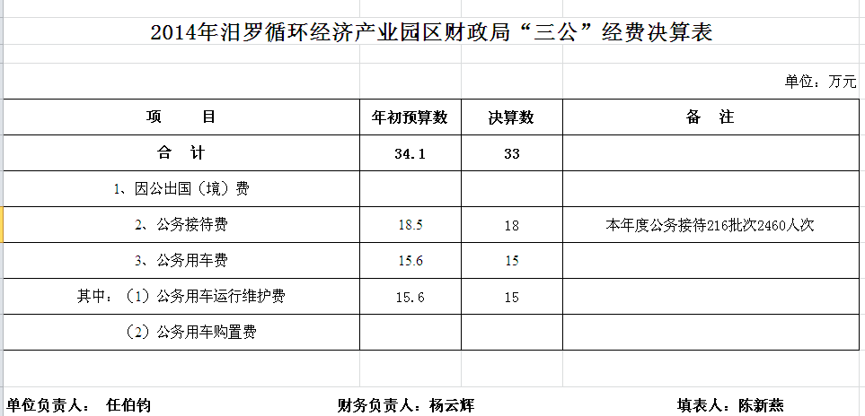 2014年汨罗市循环经济产业园区财政局部门单位决算和“三公”经费决算公开表
