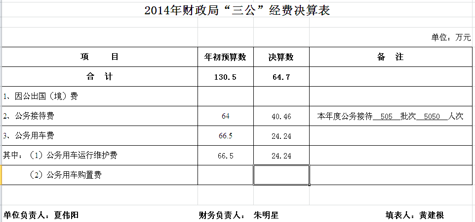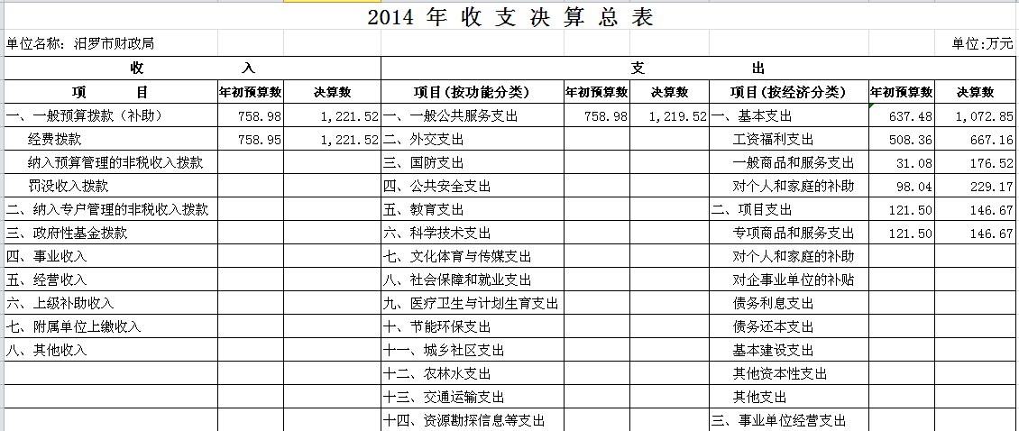 2014年汨罗市财政局部门单位决算和“三公”经费决算公开表