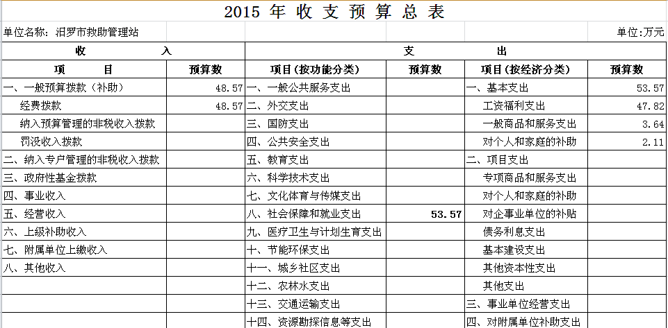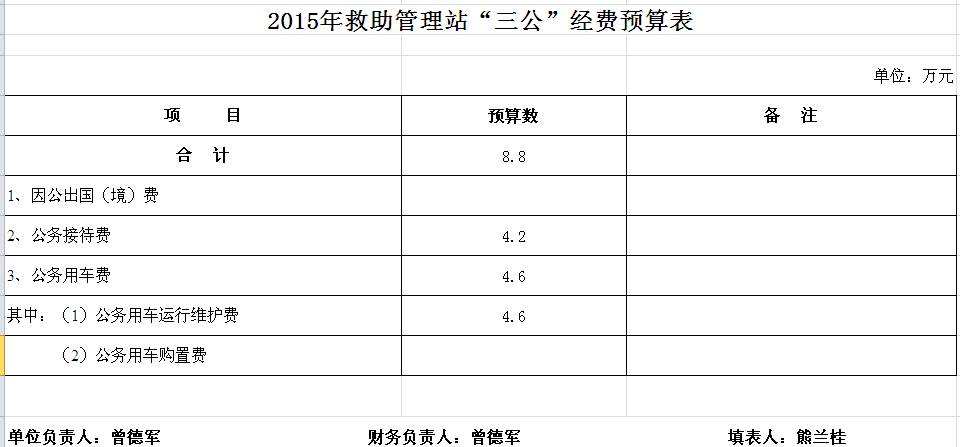2015年救助管理站收支预算总表及“三公”经费预算表