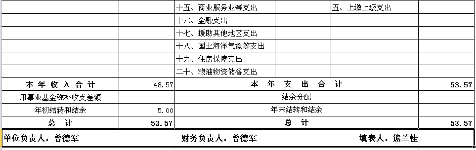 预算总收入53.57万元,其中:经费拨款48.57万元,上年结余5万元。