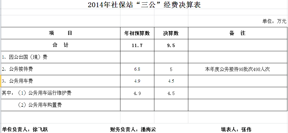 2014年汨罗市社保站决算和“三公”经费决算公开表
