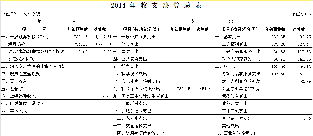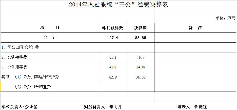 2014年汨罗市人社系统决算和“三公”经费决算公开表