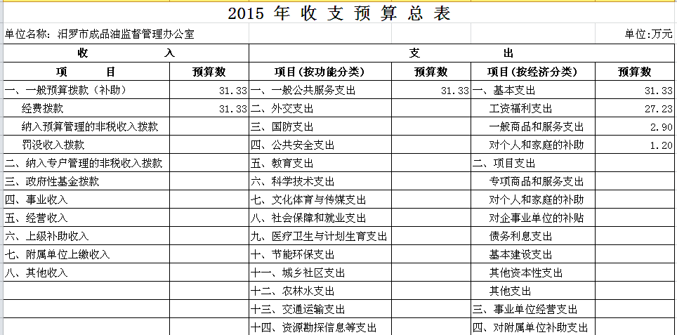 2015年成品油办收支预算总表及“三公”经费预算表