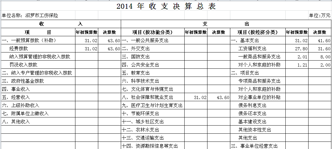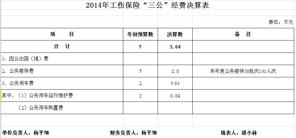 2014年汨罗市工伤保险决算和“三公”经费决算公开表